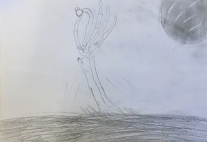 Frun kände en benig hand rycka tag i hennes hår och så slets hon ner från sängen och drogs iväg mot fönstret.